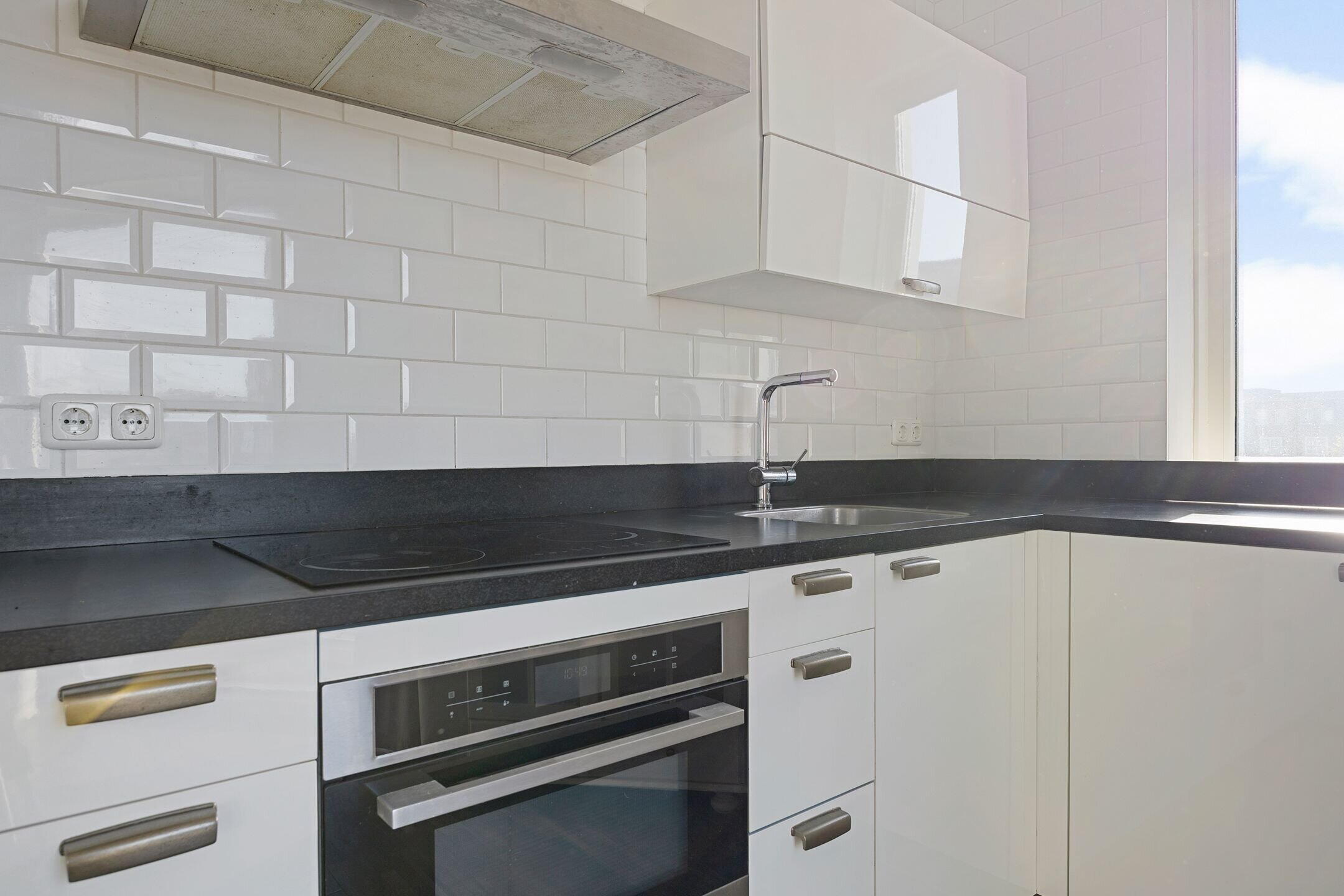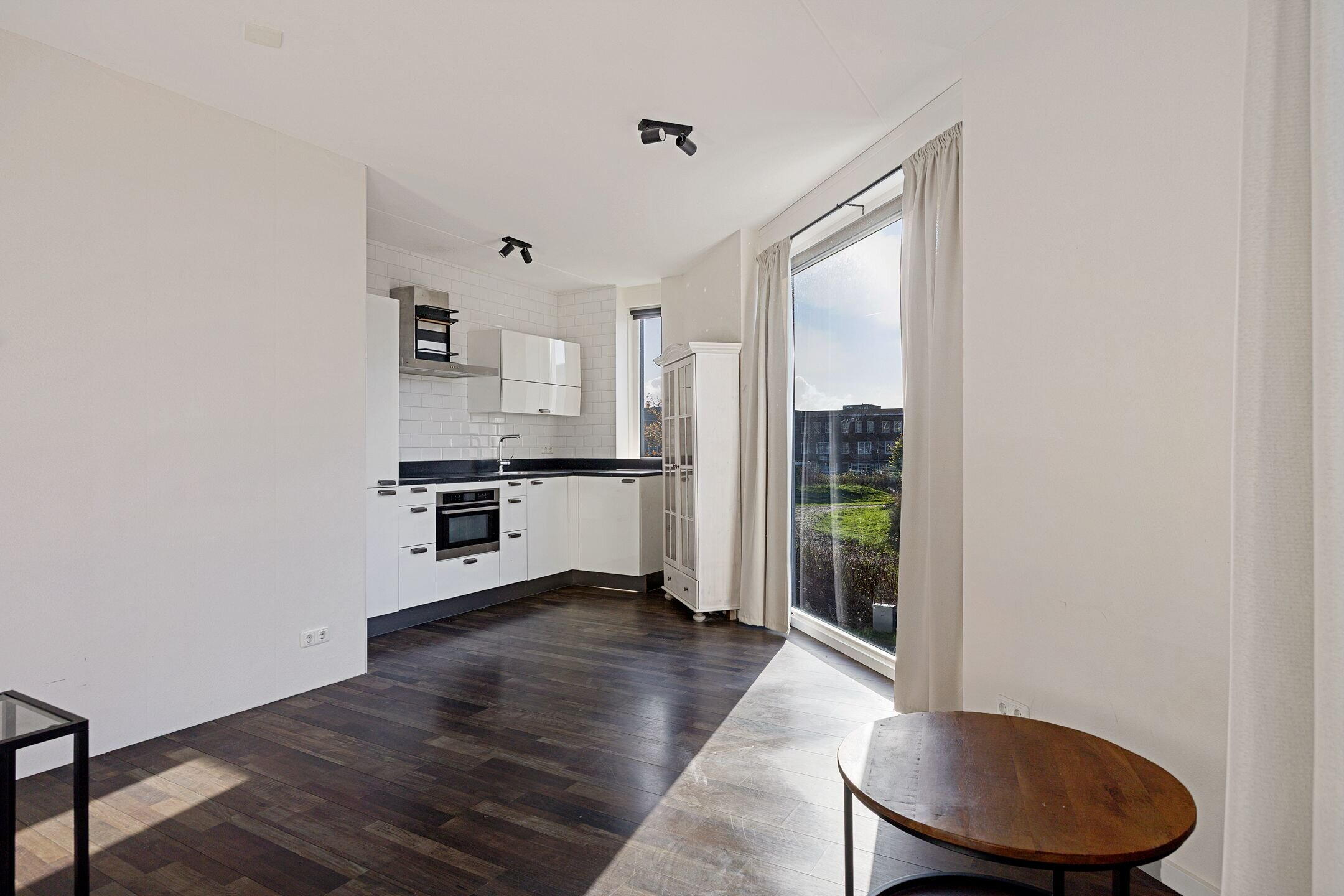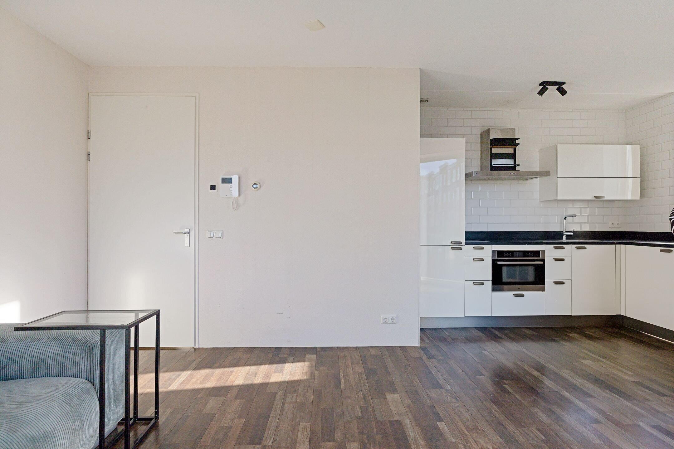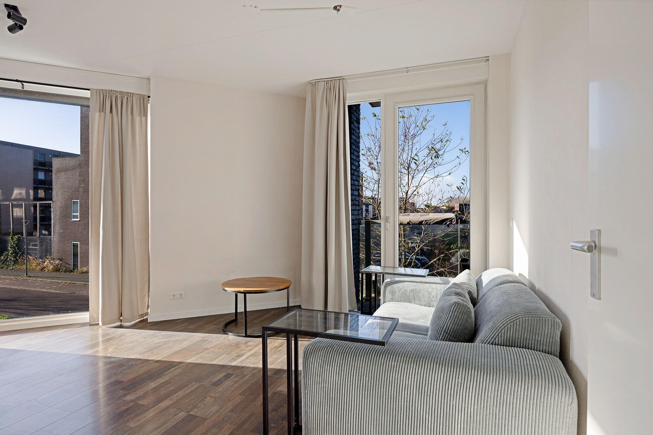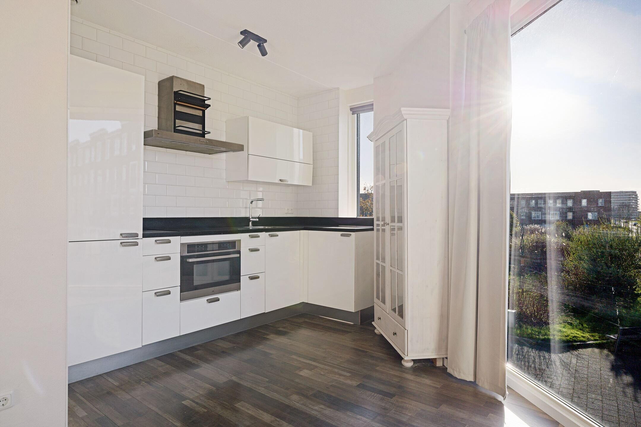 De woonkamer met open keuken en veel opbergruimte heeft toegang tot het balkon. De gehele woning is voorzien van een laminaat vloer. De keuken is voorzien van een combi-magnetron, koel-vriescombinatie, inductie kookplaat en afzuigkap. Op de begane grond is erin de onderbouw een ruime gedeelde berging.