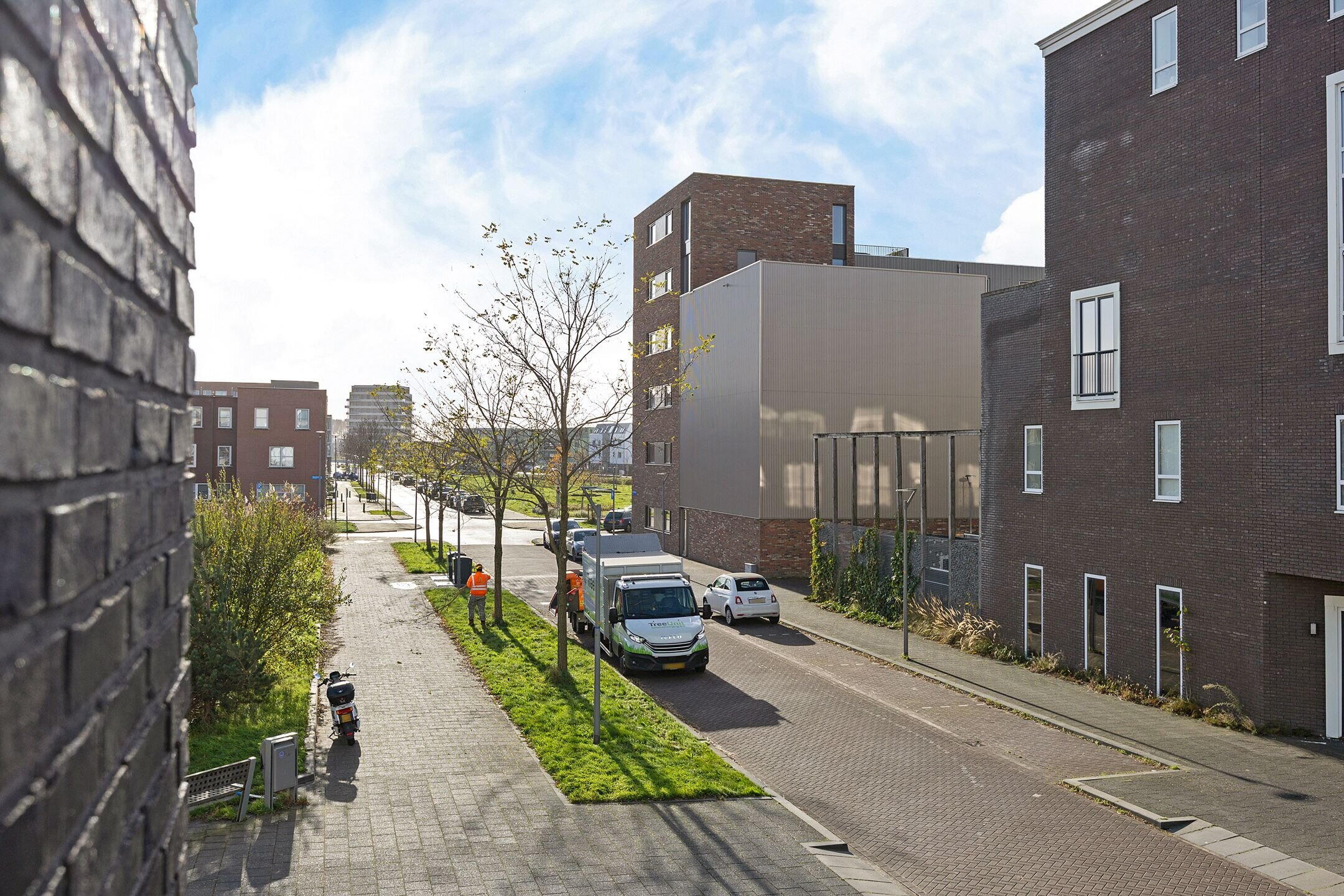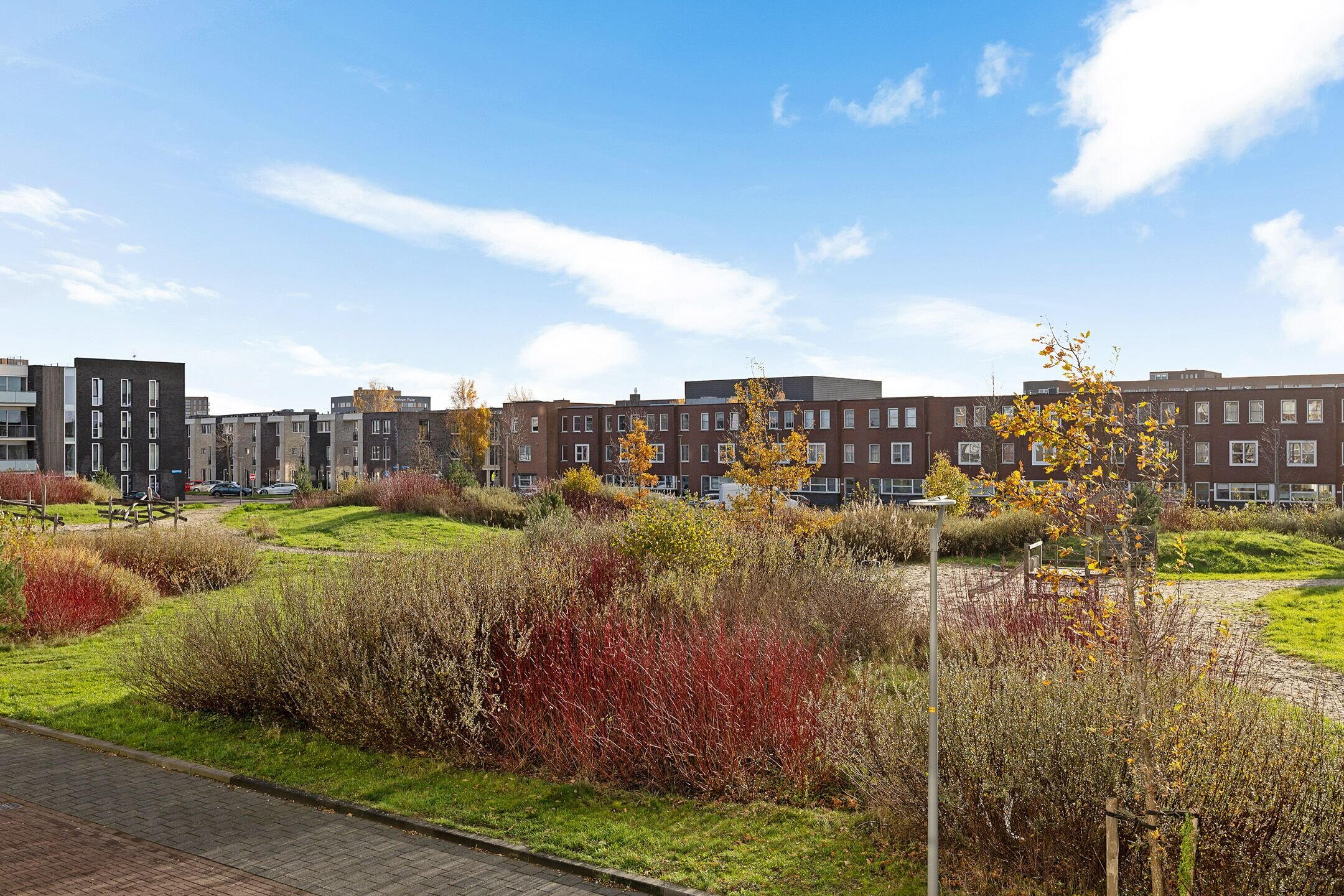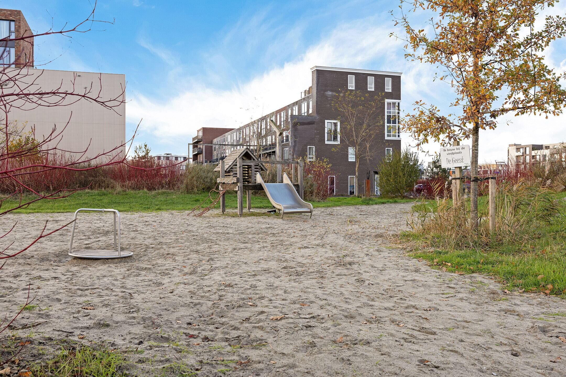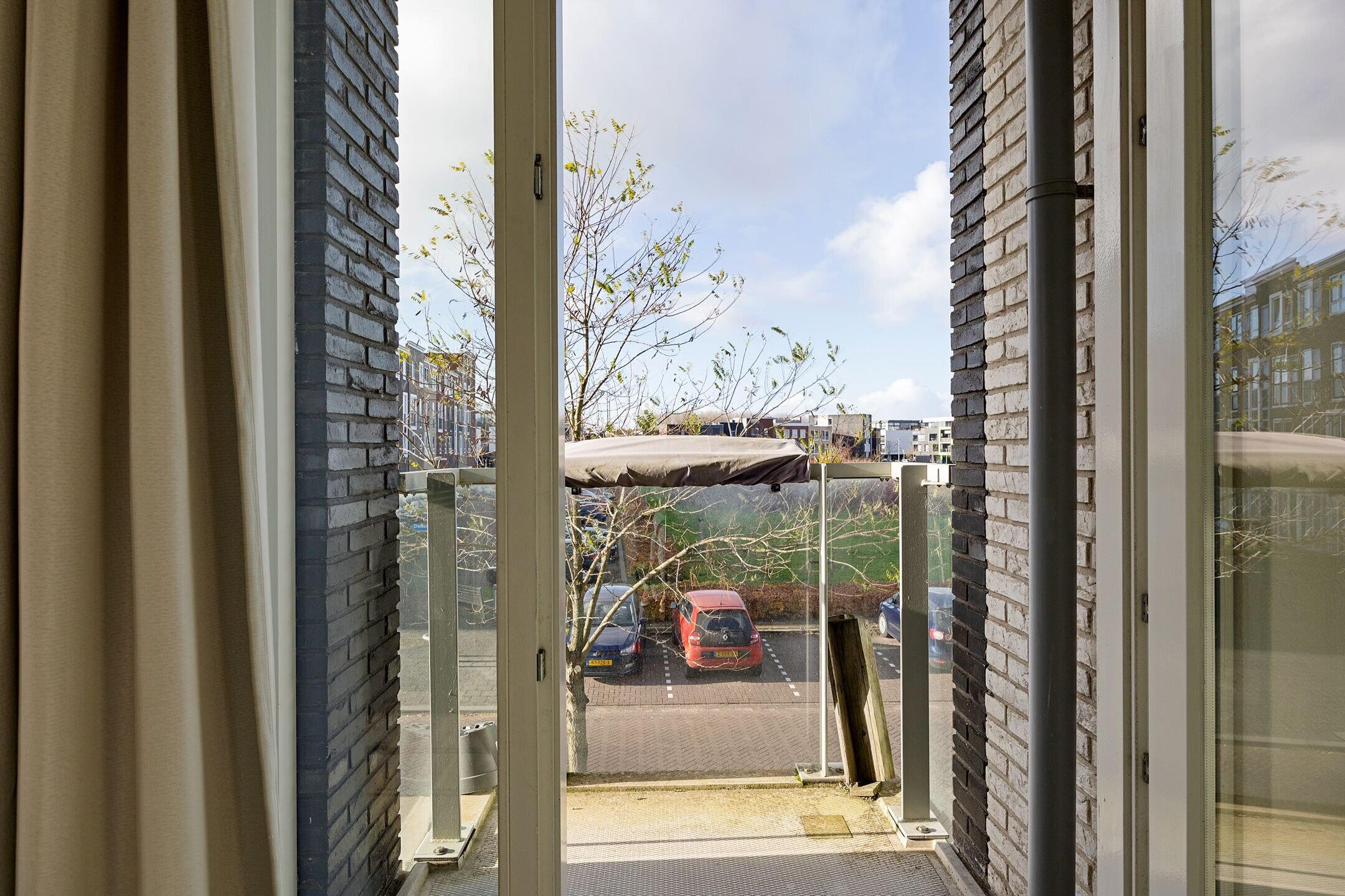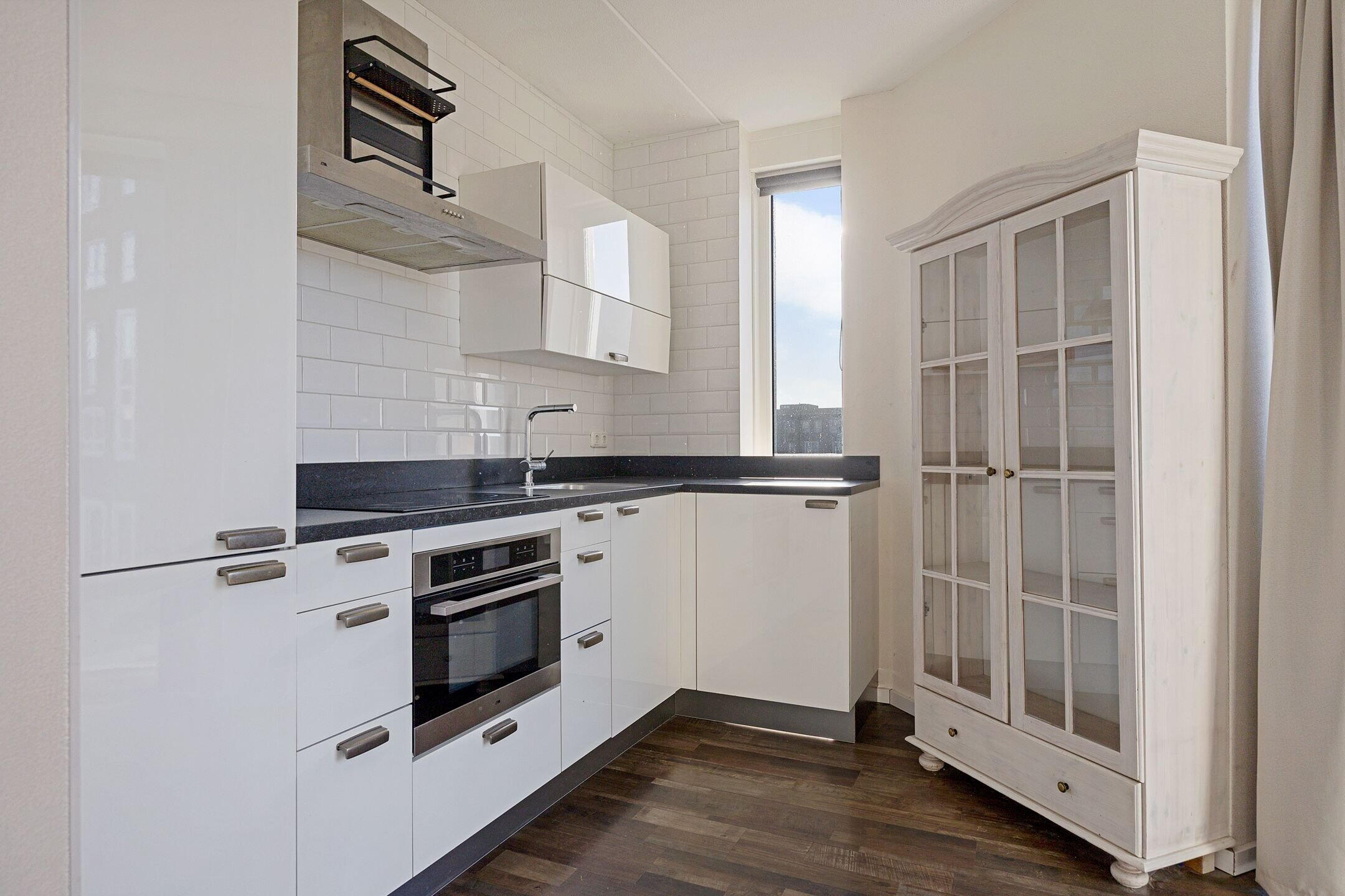 De woonkamer met open keuken en veel opbergruimte heeft toegang tot het balkon. De gehele woning is voorzien van een laminaat vloer. De keuken is voorzien van een combi-magnetron, koel-vriescombinatie, inductie kookplaat en afzuigkap. Op de begane grond is erin de onderbouw een ruime gedeelde berging.