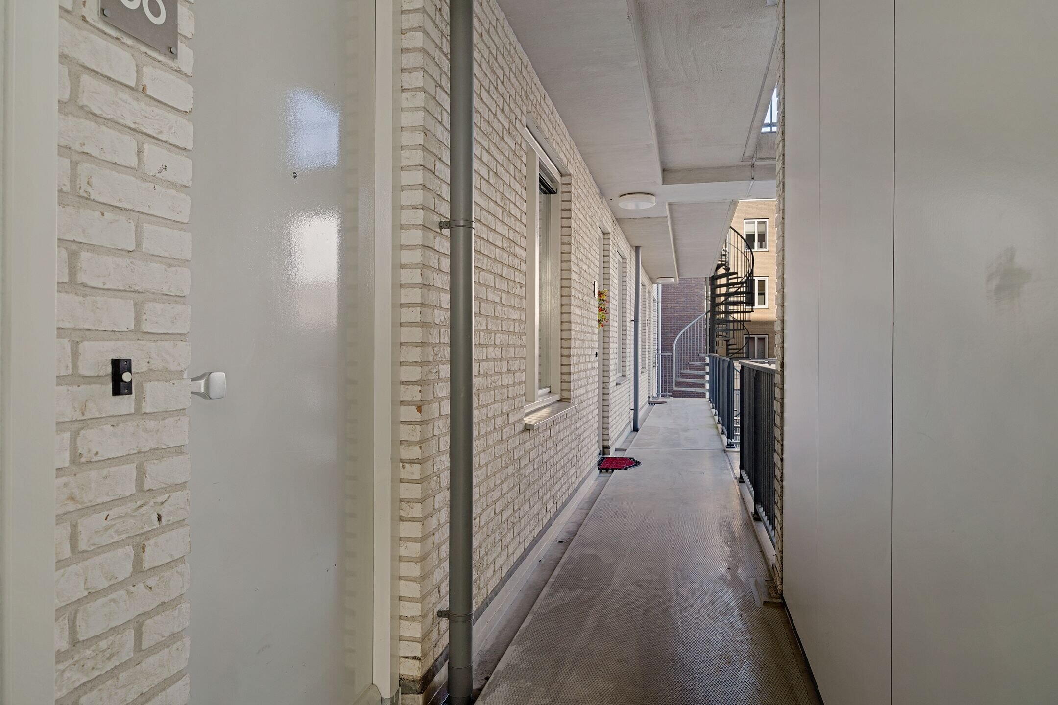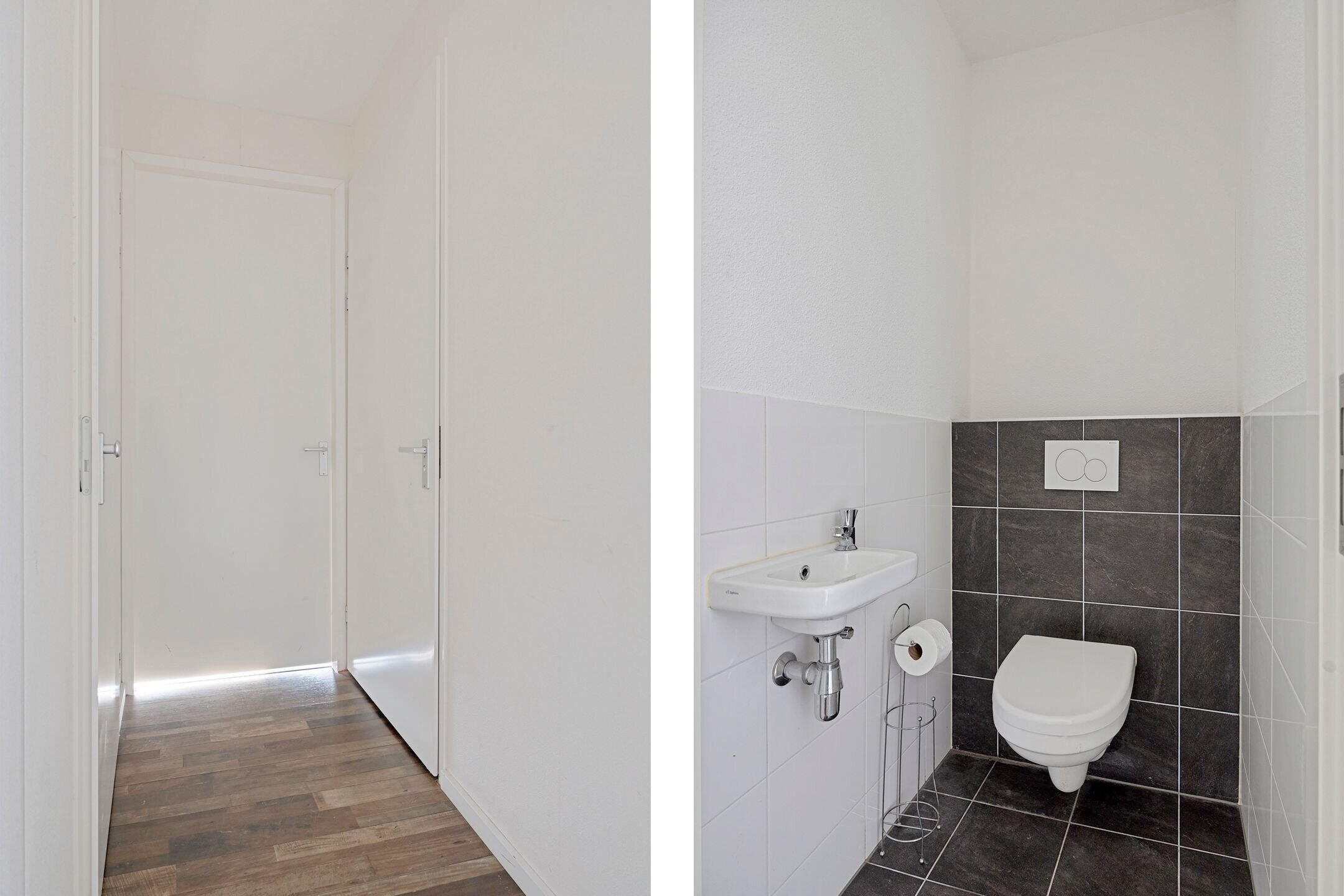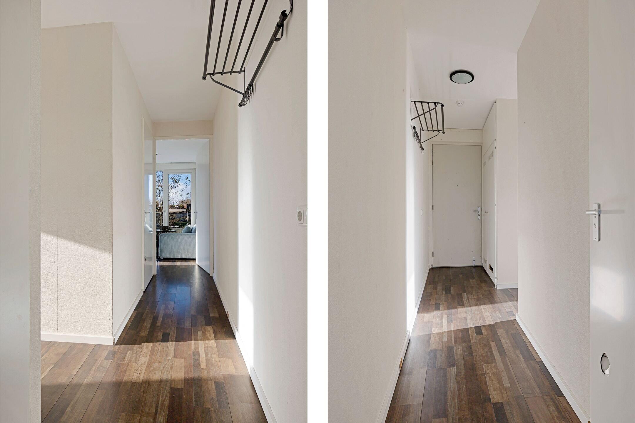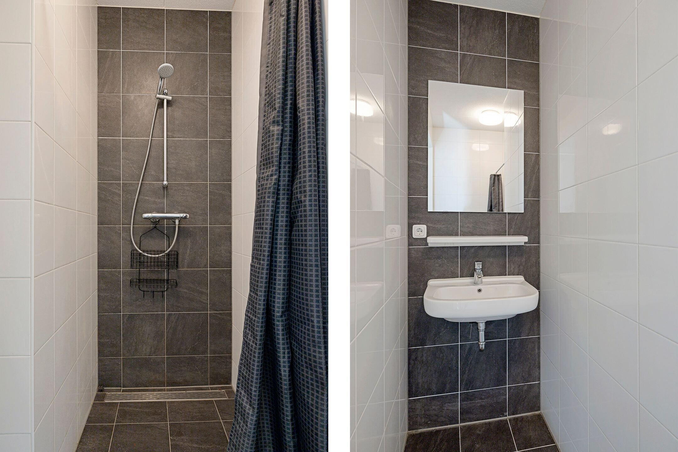 U komt het appartement binnen via de afgesloten centrale entree. Deze is voorzien van een lift en een trappenhuis. Vervolgens komt u bij binnenkomst van het appartement de hal binnen waar u de meterkast kunt vinden evenals toegang tot de slaapkamer. Vanuit de hal heeft u toegang tot de badkamer met wastafel, toilet en een ruime inloopdouche.